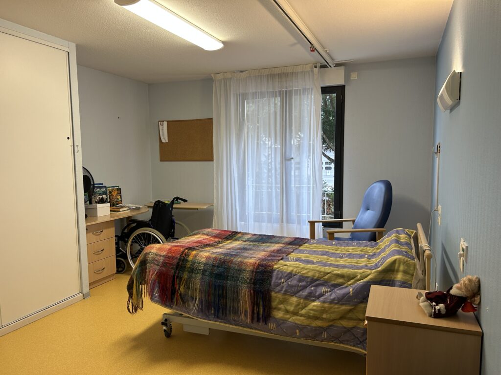 Toutes les chambres de l’établissement sont équipées d’un lit médicalisé, d’une table de nuit, d’un placard de rangement, d’un téléviseur et d’un téléphone. Pour compléter et personnaliser les lieux, la personne accueillie peut y ajouter ses biens personnels. Les chambres ont également une salle de bain privative avec lavabo, douche et toilettes.
